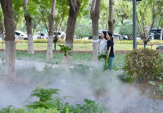 当市民和游客漫步至旱溪及花境区域时,雾森喷雾系统会适时启动。刹那间,缕缕轻柔的水雾如薄纱般袅袅升起,温柔地缠绕着苍劲挺拔的树干,轻盈地拂过葱郁繁茂的叶尖。此时若恰逢阳光穿透林间空隙,水雾与光影便会交织出如梦似幻的奇妙景象,整个空间瞬间充满仙灵之气,令人仿佛置身于仙境之中。