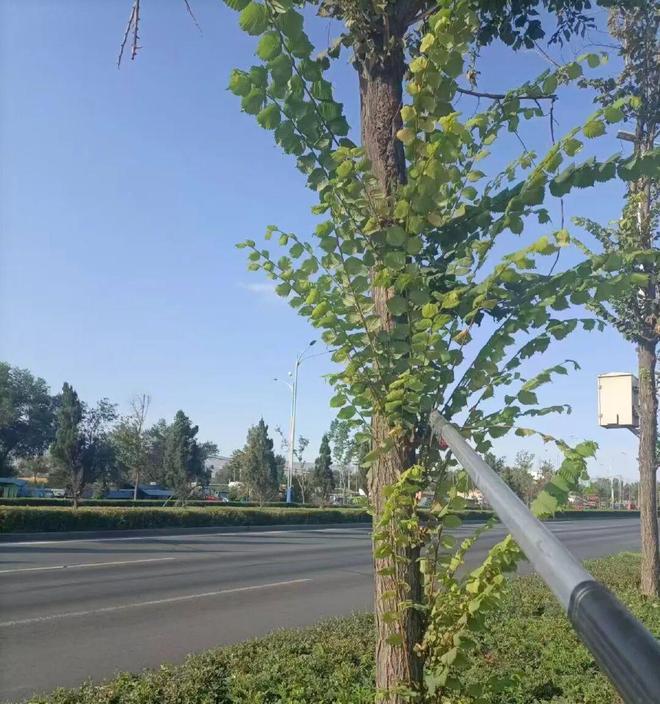 秋季树木萌芽条过多,会分流主干和主枝的养分,导致树木生长不均衡,部分枝条因养分不足易出现枯萎,同时过密的萌芽条还会影响树冠通风透光,增加病虫害滋生风险。“尤其是行道树,若萌芽条无序生长,还可能与电线、交通标识等产生干扰,存在安全隐患。”工作人员现场介绍道。